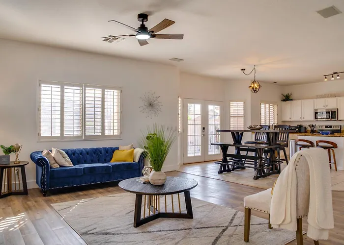 Cette villa de Goodyear est équipée d'une cuisine équipée avec une cafétière/théière électrique, un réfrigérateur et de la vaisselle pour la préparation des repas sur place. Vous pourrez dîner dans Federico's Mexican Food, qui est dans une zone de 1 km. L'aéroport Goodyear de Phoenix est à 20 minutes en voiture de villa.
